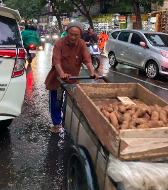 Di saat orang lain masih tertidur dengan pulas, Abah Ahim sudah siap dorong gerobak isi ubi mentah. Usianya 93 tahun. Tangannya sudah gemetar, Kakinya sering nyeri, Tapi Abah tetap maksain jualan