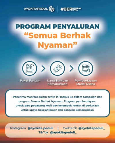 *Ayo Kita Peduli merupakan NGOs yang berdiri sejak 2023 dan berada di bawah naungan Ayo Berdampak Berdaya. Dengan tagline #BerdampakBerdaya kami berfokus pada masalah kemiskinan kelas sosial rentan perkotaan dan pedesaan melalui berbagai program dan campaign pemberdayaan untuk upaya peningkatan kesejahteraan.
