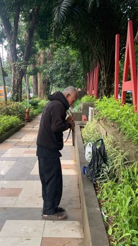 Abah Nono justru harus bertahan hidup seorang diri di emperan ruko. Tidur beralaskan kardus pinjaman, berselimutkan karung, ditemani rasa dingin malam yang sering memperparah penyakit asmanya.