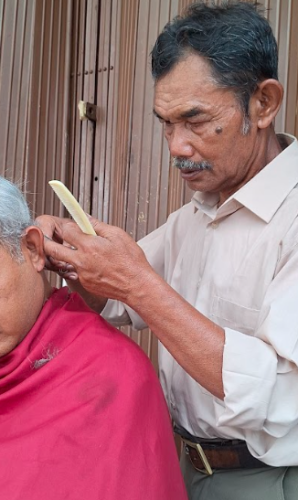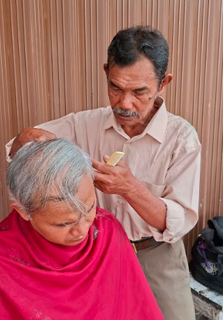 Lansia Tukang Cukur Keliling Bertahan Hidup Meski Harus Berjalan Pincang