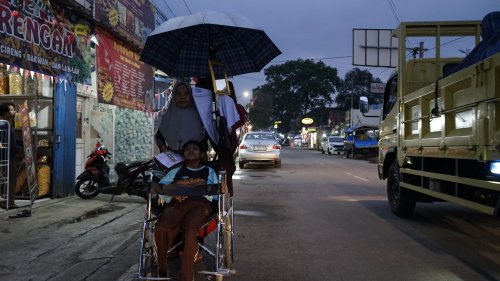 Untuk bertahan hidup, Bu Komalawati menjahit kerudung dari sisa kain konveksi menggunakan mesin tua peninggalan suaminya. Setiap hari ia berjualan sambil mendorong kursi roda anaknya, menempuh jalan terjal demi beberapa lembar uang. Penghasilan yang didapat hanya sekitar Rp10.000–Rp20.000, sering kali tak cukup untuk sekadar makan.
