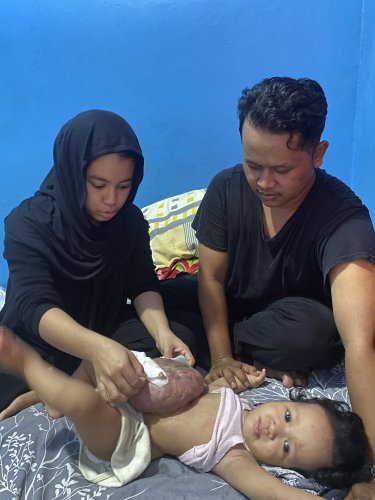 Kini di usia 1,2 tahun, Seana masih harus menjalani kontrol rutin, tindakan medis lanjutan, serta perawatan harian yang ketat. Biaya perban, NHCL, kasa steril, hingga susu formula khusus tidak sepenuhnya ditanggung BPJS dan terus membengkak.