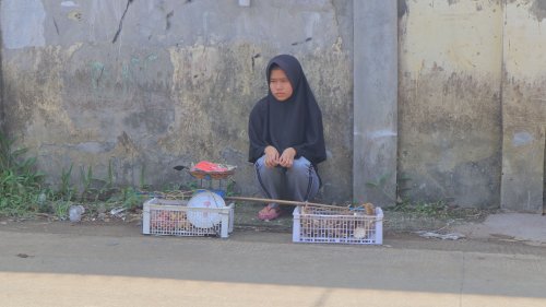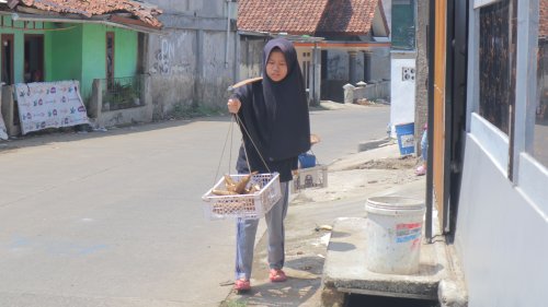 Setiap harinya, Reni berjualan hasil bumi berkeliling. Terkadang, dagangannya tidak dilirik sama sekali oleh orang lain. Cuaca panas dan hujan tetap ia terjang dengan tekadnya yang luar biasa. Jika dagangannya tak laku, ia sering gunakan untuk mengganjal perut setelah berkeliling seharian.