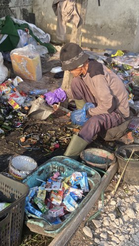 Setiap botol plastik, kardus bekas, atau kaleng minuman ia kumpulkan satu per satu. Hasilnya? Kadang cuma cukup buat makan sehari. Tapi Abah nggak pernah mengeluh. “Yang penting halal,” katanya sambil tersenyum. Ada ketulusan dalam cara dia bekerja, ada rasa bangga dalam tiap langkahnya, meski tubuhnya mulai sering memberi tanda pinggang sakit, kaki pegal, napas sesak. Ya. tubuhnya mulai lelah.