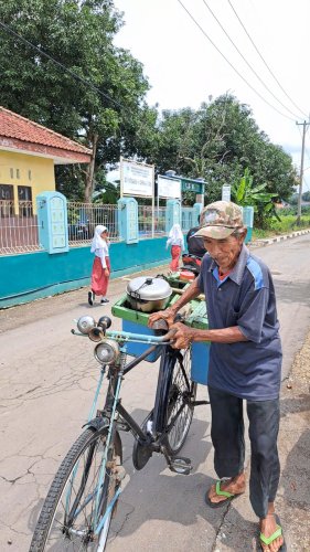 Abah berjualan cilok dari jam 06.30 pagi dan akan berkeliling ke sekolah-sekolah untuk menjajakan jualannya. Saat berjualan abah tidak mengayuh sepedanya tetapi hanya bisa mendorongnya karena sepeda abah sudah tua dan banyak kerusakan seperti remnya sudah blong dan bannya juga banyak lubang sehingga harus mengganti ban yang baru. Namun, untuk mengganti semua itu abah tidak memiliki uang yang cukup karena untuk membeli kebutuhan sehari-hari saja abah masih merasa kesulitan.