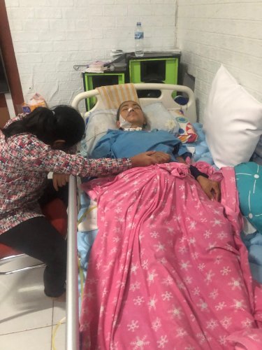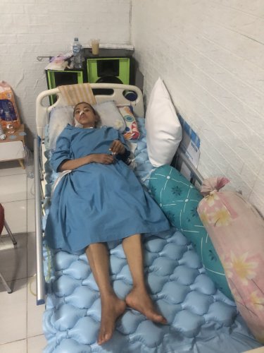 Selang di hidung untuk makanan dan minuman, selang di kemaluan untuk pembuangan urin, serta lubang di tenggorokan agar Bu Dwi bisa bernapas. Belum lagi luka menganga di tulang ekor yang membuat Bu Dwi tidak bisa duduk dan kedua kakinya tak dapat digerakkan.