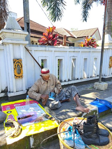 Abah juju (76) sudah puluhan tahun membuka jasa sol sepatu dan menjual sepatu bekas. Itu semua ia lakukan untuk bisa mencukupi kebutuhan hidup keluarganya. Dahulu, jasa sol sepatu sangat diminati namun seiring berjalannya waktu sudah jarang orang yang menggunakan jasanya dan memilih membeli barang yang baru. Setiap hari abah akan berkeliling dari jam 8 pagi hingga sore hari, tak jarang juga abah akan berdiam di suatu tempat sambil menunggu pelanggan datang.