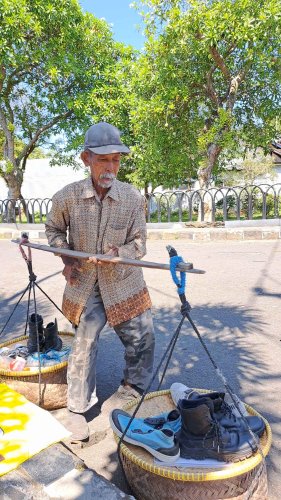 Usia yang semakin menua bukan halangan untuk terus mencari nafkah. Dengan langkah tertatih Abah Juju harus berkeliling dengan berjalan kaki sambil memilkul barang bawaannya berharap ada orang yang akan membeli sepatu bekas miliknya atau sekedar menggunakan jasanya untuk memperbaiki sepatu yang sudah rusak.