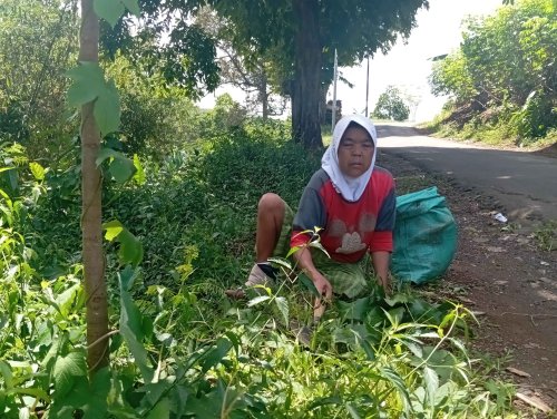 Setiap pagi, Mak Esih tetap memaksakan diri motong rumput untuk dijual sebagai pakan ternak. Bukan untuk menabung… tapi sekedar agar bisa makan hari itu.