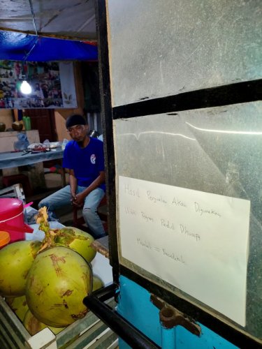 "Ya yang nama jualan ada kalanya sepi, kalau sepi saya bagikan kelapanya ke orang-orang" Ujar Kang Aceng