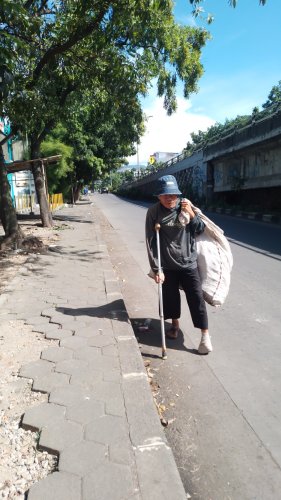 Kecelakaan 4 tahun lalu yang membuat satu kakinya diamputasi, Pak Edang (60 tahun) tetap mencari nafkah dengan berjualan Sapu lantai karena sang istri (52 tahun) sangat membutuhkan perawatan karena alami struk 4 Tahun sejak lalu. Selain jualan sapu, disela waktunya Pak Edang juga mencari botol plastik bekas (mulung) berjalan tak kurang dari 10Km setiap hari ia jalani dengan satu kaki.