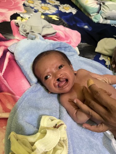 Lahir bukan dengan tangisan bahagia… namun dengan kondisi bibir, langit-langit, lidah, dan gusi sebelah kiri tidak terbentuk sempurna sejak lahir. Bayi sekecil itu bahkan tidak bisa menyusu seperti bayi lain.