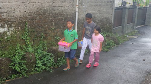 Sore itu hujan turun sangat deras, terlihat tiga bocah tengah berteduh di depan sebuah toko sembari mendekatkan diri satu sama lain untuk menghangatkan badan mereka yang menggigil. Tak tega melihat hal tersebut, akupun segera mendekati mereka untuk mengajak mereka makan sembari berteduh.