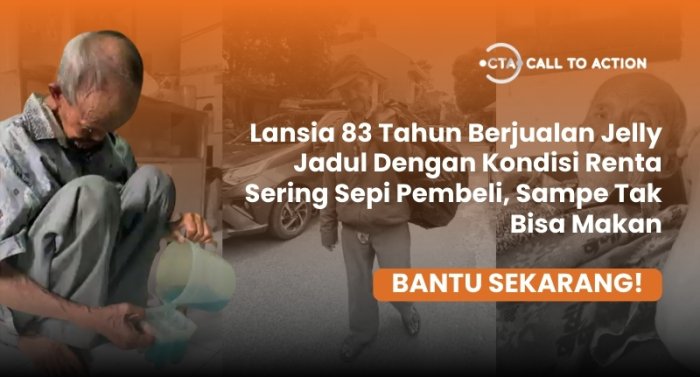 Di usia 83 tahun, Abah Udin masih harus berjualan jelly dengan keresek plastik seadanya di depan sekolah. Tubuhnya sudah lemah, tapi ia tetap berjalan kaki setiap hari demi membawa pulang sedikit rezeki untuk 3 anaknya. Sering kali, Abah terpaksa menahan lapar bukan karena beribadah, tapi karena memang tak ada uang untuk makan.