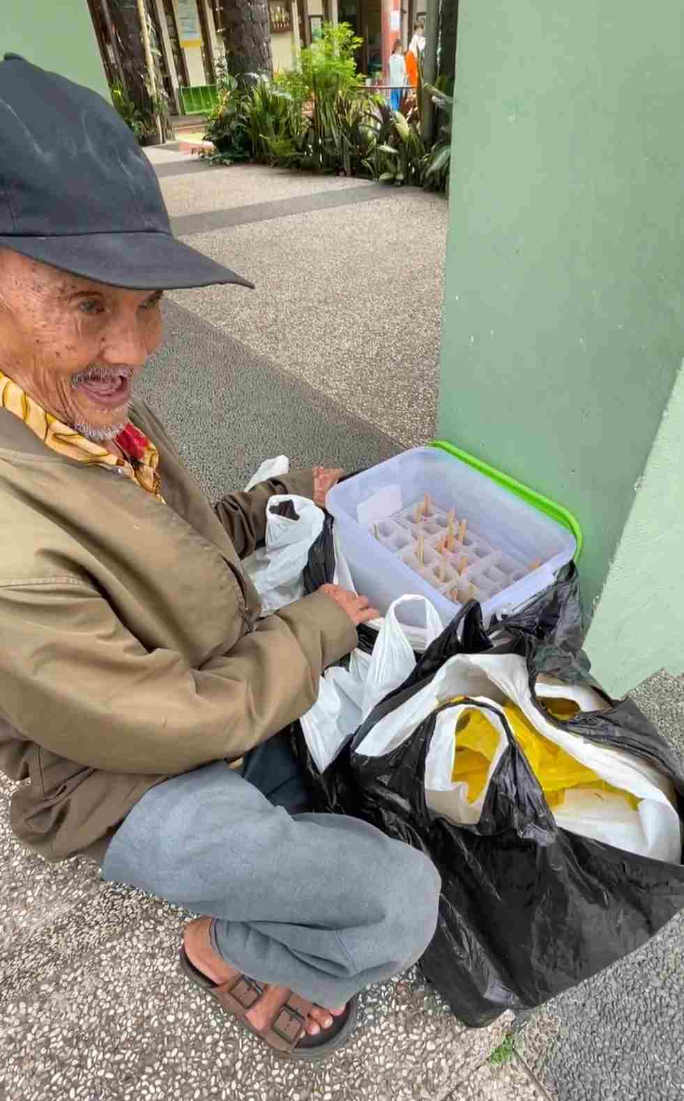 Di usianya yang sudah renta, Abah Udin (83) masih berjualan jelly di depan sekolah hanya dengan membawa keresek seadanya. Setiap hari ia berjalan kaki dengan tubuh lemah demi bisa membawa pulang sedikit rezeki untuk kebutuhan 3 anaknya. Sering kali Abah harus menahan lapar, berpuasa bukan karena ibadah, melainkan karena tidak punya uang untuk makan.
