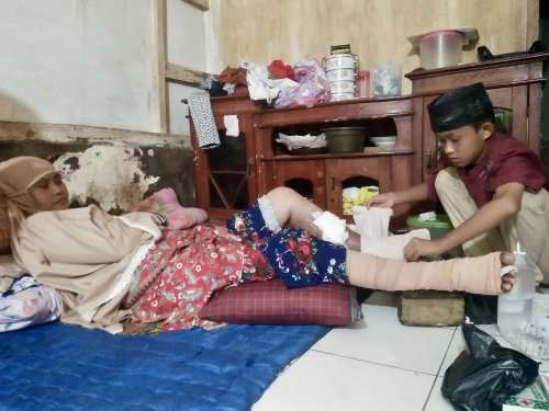 Kalau gak jualan, kasihan mama udah gak bisa jalan sama sekali dan sering sakit karena luka di kakinya makin banyak. Aku mau bantuin mama supaya bisa berobat dan jalan lagi. Saepul (14) harus menelan kenyataan pahit di usia yang seharusnya masih bermain. Ibunya, Bu Rina (34) mengidap penyakit langka yang membuat kakinya melepuh karena luka yang diderita.