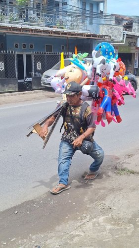 Keliling Dengan Kaki Pengkor! Lansia Penjual Balon Ini Berjuang Demi Nafkah