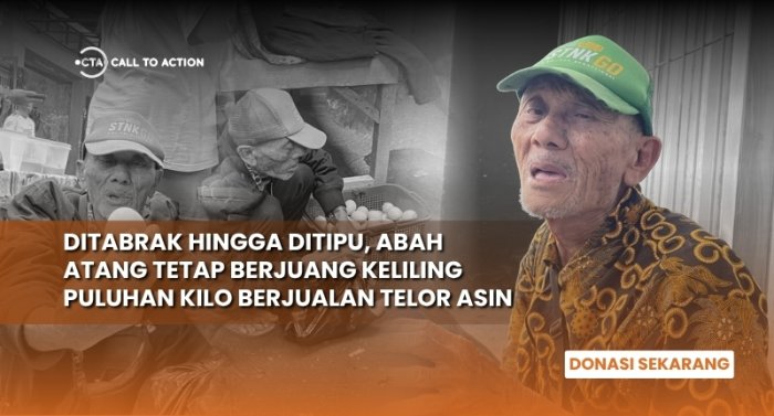 Usianya renta 77 tahun tapi Abah Atang masih berjuang keliling jualan telor asin, ia hanya menjualkannya dan cuma diberi upah 500 perak.