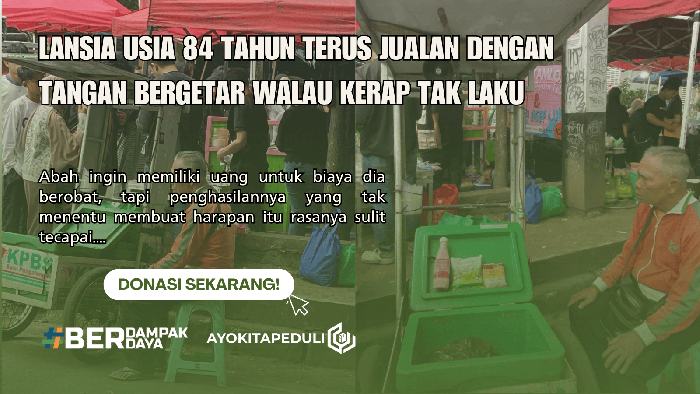 Di usia 84 tahun, Abah seharusnya tidak lagi berjuang sendirian di jalan demi sekadar makan. Mari bersama kita bantu Abah Akung dengan cara: