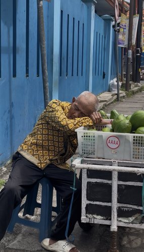 Di usia yang sudah menginjak 93 tahun, saat kebanyakan orang menikmati masa istirahat di rumah, Abah Anang justru masih harus berkeliling sejak pukul 7 pagi hingga sore hari, mendorong gerobak alpukat menyusuri jalanan.