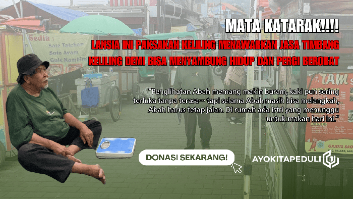 Dulu, saat tubuhnya masih kuat dan langkahnya masih tegap, Abah bisa membawa pulang hingga Rp200.000 sehari. Kini, dengan kondisi fisik yang melemah dan penglihatan yang semakin buram karena katarak di kedua mata, penghasilannya tak menentu, kadang hanya Rp20.000, kadang Rp50.000 jika sedang ramai.