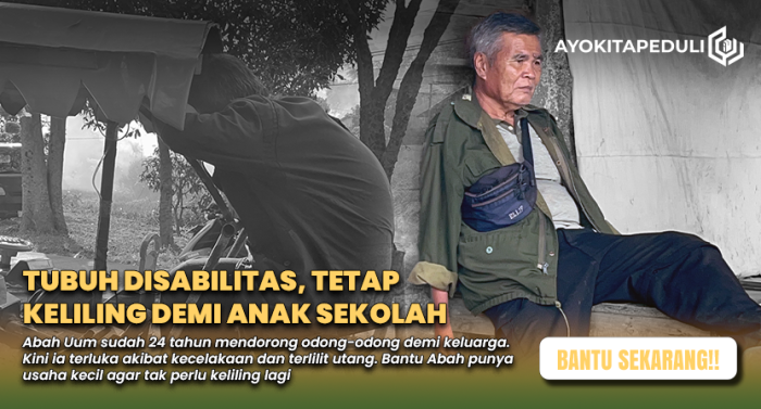 Yuk, sisihkan rezeki terbaik hari ini dan bantu Abah Uum bangkit dari kesulitan.