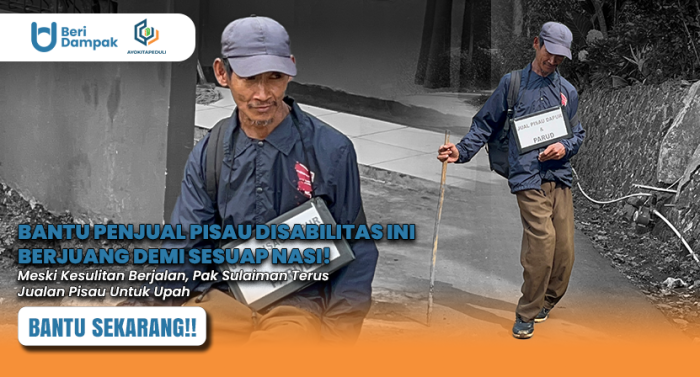 Pak Sulaiman adalah penjual pisau dapur dan parutan keliling yang hidup dengan berbagai keterbatasan. Setiap hari, ia berjalan dari kampung ke kampung sambil membawa dagangannya, meski kondisi fisiknya mengalami disabilitas yang membuat langkahnya tak lagi kuat dan sering goyah.Barang dagangan yang ia jual bukan miliknya sendiri.