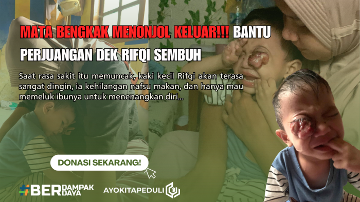 Lahir di tengah keluarga dengan keterbatasan ekonomi, kelainan pada mata kiri Rifqi sebenarnya sudah terlihat sejak lahir. Bagian hitam matanya tampak melebar tak lazim. Namun, karena ketidaktahuan dan kondisi sulit, orang tua baru bisa membawanya ke rumah sakit saat usia Rifqi satu tahun. Sempat membaik, badai justru datang di bulan Agustus lalu. Mata Rifqi membengkak hebat, memerah, hingga mengeluarkan darah dan merekah keluar.