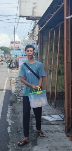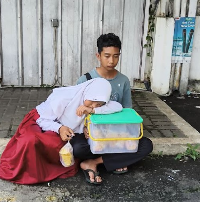 Setiap hari dari pagi hingga sore Fahmi berkeliling menjajakan dagangannya dan pada siang harinya sang adik menemani Fahmi berjualan.