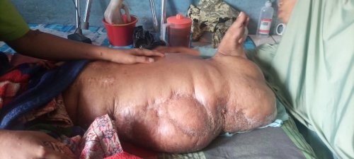 Waktu terus berjalan…Tanpa penanganan maksimal, kondisi Wahyu semakin parah. Benjolan tidak hanya di kaki, tapi mulai menjalar ke bagian tubuh lain. Wahyu kini sudah menjalani 3 kali operasi besar, dengan total 11 kg benjolan berhasil diangkat. Perlahan ia mulai bisa berjalan kembali. Tapi perjuangannya belum selesai…