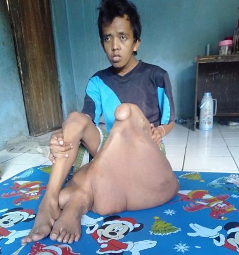 16 Tahun Menahan Sakit, Kaki Wahyu Kini Membengkak Hingga 25 Kg Selama 16 tahun, Wahyu (24 tahun) diam menahan rasa sakit yang luar biasa. Sejak balita, ia mengidap penyakit kaki gajah yang terus membesar tanpa henti hingga kini mencapai lebih dari 25 kg.