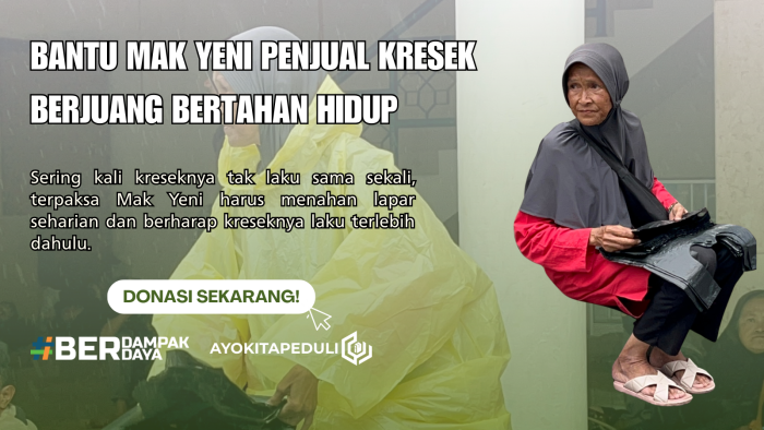 Mari bantu Mak Yeni. Sekecil apa pun donasi Anda, sangat berarti untuk mengubah hidupnya. Karena tidak seharusnya seorang ibu berusia 66 tahun bertahan hidup hanya dengan menjual kantong kresek seikhlasnya.
