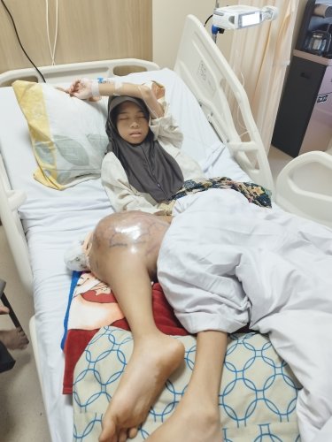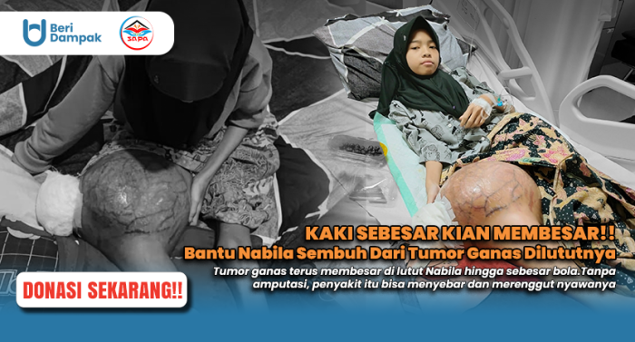 Kini, tumor di lutut Nabila semakin membesar, dari sebesar telur ayam menjadi sebesar bola.