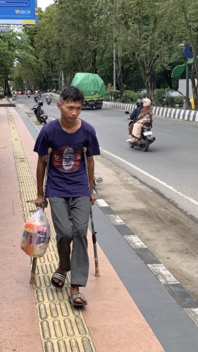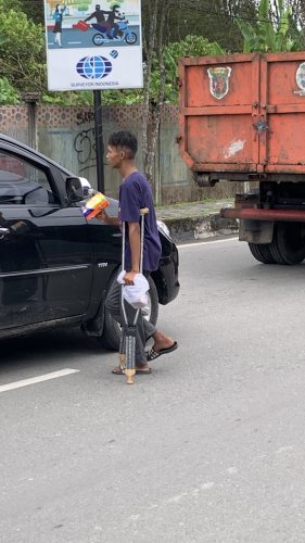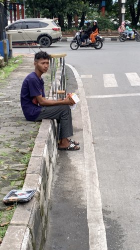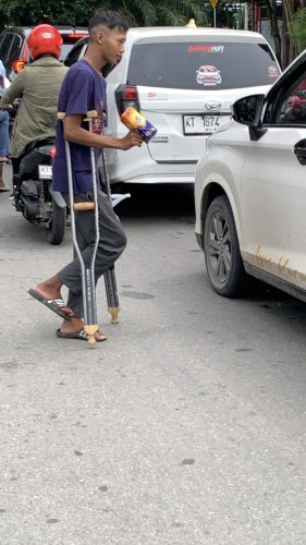 Sore hari, ketika lampu jalan mulai redup, lelah di tubuh Dzaky semakin terasa. Pegal karena berdiri terlalu lama, sakit karena kakinya dipaksa bekerja, dan sedih karena ia tahu ia seharusnya masih duduk di bangku sekolah bukan berjuang di jalanan. Tapi ia tak punya pilihan lain. Hidup kadang menuntut kedewasaan yang terlalu cepat dari mereka yang paling muda. Yang membuat kisah Dzaky lebih perih adalah kenyataan bahwa kondisinya tidak harus separah ini. Jika ia bisa kontrol rutin, jika ia bisa mendapatkan perawatan lanjutan, peluangnya untuk berjalan lebih baik masih ada. Namun tanpa biaya, keadaan itu hanya menjadi harapan yang semakin menjauh.