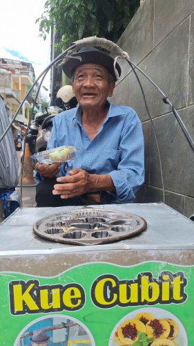 Di usia 75 tahun, Abah Anang masih keliling jalan kaki menjajakan kue cubit di Bandung.