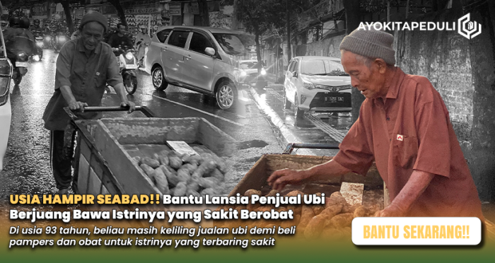 Di saat orang lain masih tertidur dengan pulas, Abah Ahim sudah siap dorong gerobak isi ubi mentah. Usianya 93 tahun. Tangannya sudah gemetar, Kakinya sering nyeri, Tapi Abah tetap maksain jualan