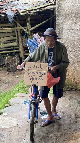 Di usia 70 tahun, Abah Turi masih berkeliling menjual layangan.