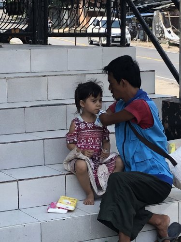 Sudah lebih dari 10 tahun Ia berjuang tanpa tangan, mengadu nasib di jalanan sambil menggendong anaknya yang masih kecil. panas-panasan dibawah sinar terik matahari dan folusi lalu lalang kendaraan. “Ia mas, anak saya yang kecil ini gak mau ditinggal. pengen ikut bapaknya terus. karna ibunya gak ada jadi gak bisa jagain kalo di rumah”. Ungkap Pak Enjah Karna kondisi ekonomi yang sulit apalagi keadaan fisik yang disabilitas membuat Pak Enjah sulit bekerja seperti orang lainnya.