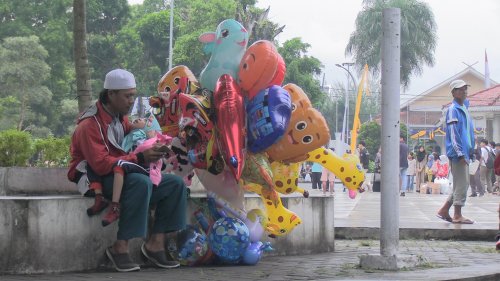 Menjelang waktu berbuka puasa di sebuah alun-alun kota, seorang pria berdiri sederhana di antara keramaian. Namanya. Pak Riki, 37 tahun. Di tangan kanannya tergenggam sebuah Al-Qur’an kecil yang ia baca perlahan, sementara tangan kirinya menggendong putri tercintanya, Alifah, yang tak pernah lepas dari pelukannya. Di sampingnya, balon-balon karakter berwarna-warni bergoyang tertiup angin, menunggu pembeli yang mungkin datang… atau mungkin tidak.