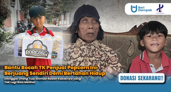 RAWAT KAKEK BUTA SENDIRIAN!! Bantu Juang Anak TK Penjual Popcorn ini Tak Putus Sekolah