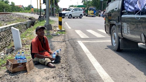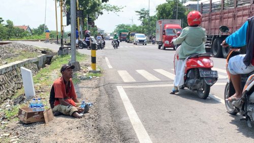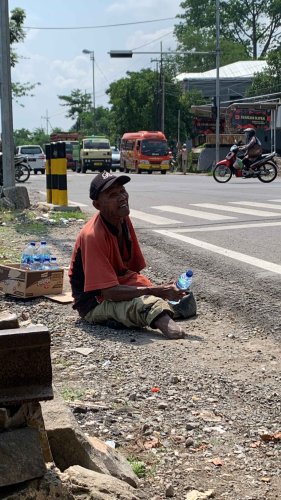 Di bawah terik matahari ia berharap setidaknya ada uang 3 ribu dibawa pulang. Lampu merah, itulah tempat mbah Reso (69 tahun) mencari nafkah sehari-hari. Pagi sampai hampir malam, ia terus mengelilingi daerah lampu merah sembari menjajakan beberapa botol air mineral.