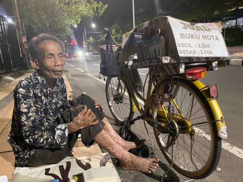 Juang Lansia Pendagang Buku Nota Demi Sebuhi Eksim Parah