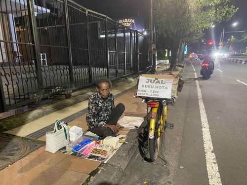 Usianya sudah 70 tahun, seharusnya menjadi masa untuk beristirahat tenang di rumah. Namun, tidak bagi Mbah Bambang. Setiap hari, dari pagi hingga malam, beliau masih harus berjuang menyusuri jalanan dengan sepeda tuanya, menawarkan nota, kwitansi, dan kalender dengan harga yang sangat murah.