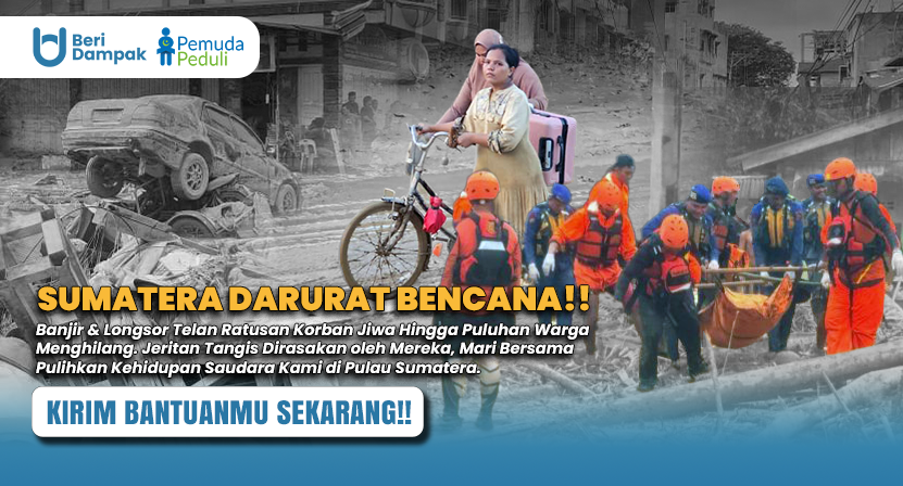 Musibah kembali menimpa negeri kita. Warga di Sumatra kini sangat membutuhkan bantuan segera. Hujan dengan intensitas tinggi yang terjadi selama empat hari berturut-turut telah menyebabkan banjir bandang, tanah longsor, serta angin puting beliung di berbagai wilayah.