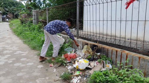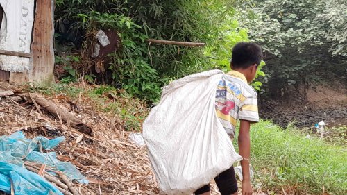 Dengan seragam yang masih melekat di tubuh kecilnya, ia langsung memanggul karung dan mulai memulung keliling kota Langsa.