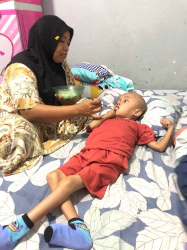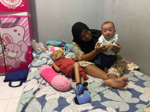 Kedua anak itu harus rutin menjalani pengobatan dan terapi di RSCM Jakarta, sedangkan mereka tinggal jauh di Ujung Kulon, Banten butuh perjalanan 4 jam sekali jalan. Meski pengobatan ditanggung BPJS, biaya perjalanan dan kebutuhan selama berobat sangat besar.