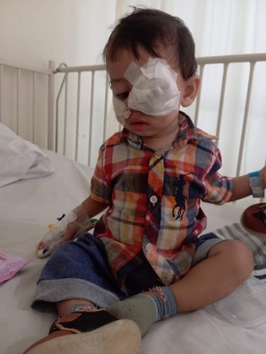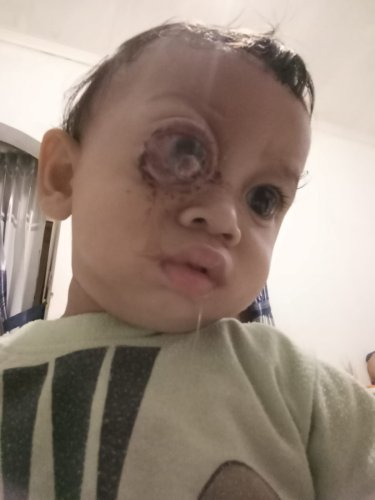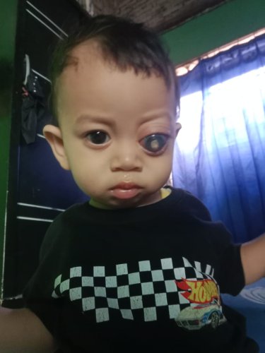 Amar anak kesayangan saya, ibu mana yang tidak sedih melihat buah hati kesayangannya, mata nya menonjol keluar. Awal nya anak saya sakit pada usia 2 bulan, muncul bercak hitam di mata nya, lalu saya bawa berobat dan di diagnosa glaukoma dan hanya mendapat obat tetes dan salep saja sampai usia 3 bulan.