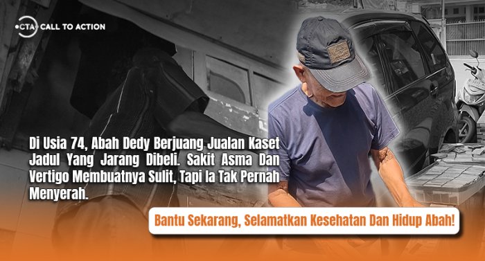 Sudah seminggu Abah Dedy (74 tahun) berjualan kaset, tapi tidak ada satupun yang laku. Ia hanya bisa menahan lapar sambil berjuang dengan penyakit asma yang sering kambuh.
