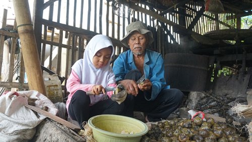 Tak hanya mengusahakan kesembuhan, Abah Teteng juga memperjuangkan pendidikan Shakilla (9) cucunya yang sudah menjadi piatu dan ditelantarkan oleh ayahnya. Tak sampai hati membiarkan Shakilla putus sekolah meski keadaan mencekik, Abah Teteng sedari pagi memetik kolang-kaling yang nantinya akan dikupas bersama sang cucu. Berselang siang, sepulang sekolah Shakilla seringkali menemani Abah menjajakan Nira dan kolang-kaling yang telah mereka bersihkan.