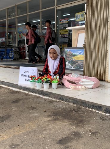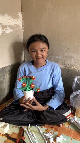 Di sela waktu, Mesya membuat kerajinan bunga dari bahan sederhana. Semua ia pelajari secara otodidak melalui video tutorial di YouTube. Dengan telaten, ia merangkai bunga satu per satu menggunakan tangannya yang mungil, bunga yang bukan sekadar hiasan, tapi lambang dari perjuangan dan kasih sayang.